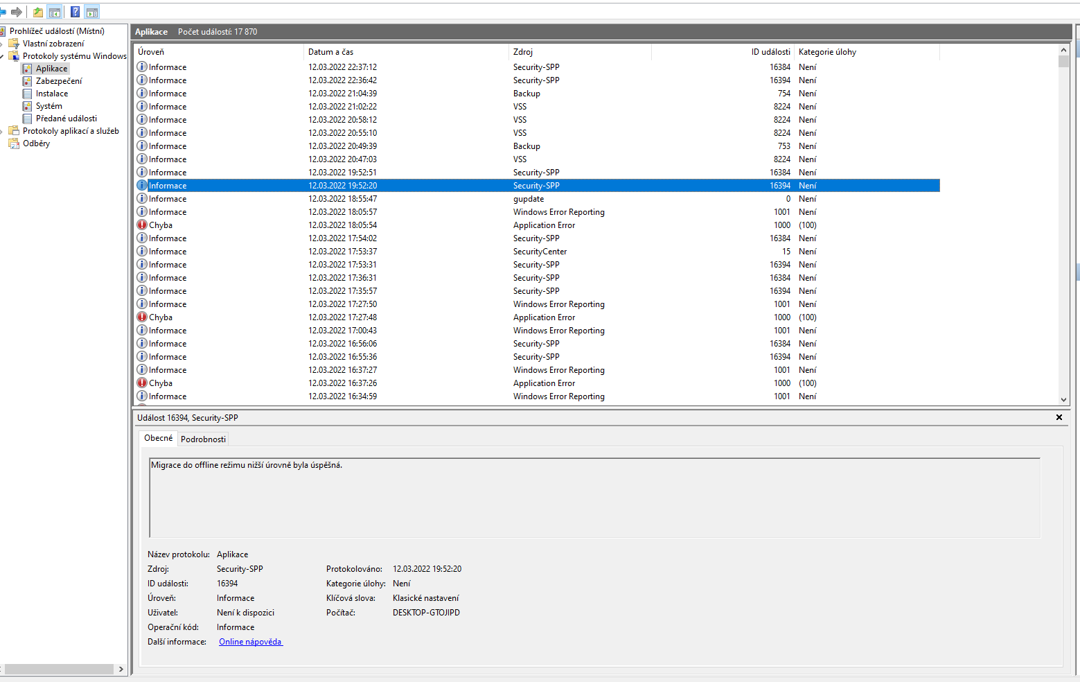 Čas spuštění chybující aplikace: 0x01d8353bb527efbc