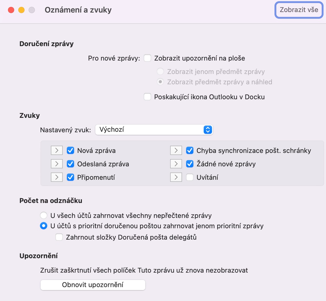 Zrušení zobrazení počtu nepřečtených e-mailů na liště MAC - Outlook