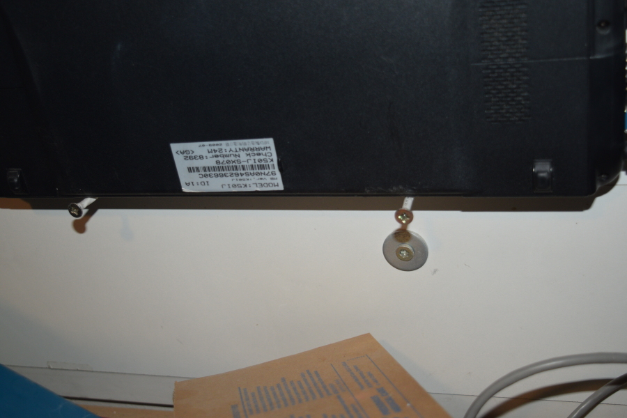 Pro notebook mám jak doma, tak na chatičce na zdi vyhrazené místo - 4vruty v hmoždinkách (dolní dva…