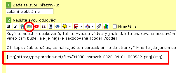 Off topic: Jak to děláš, že nahraješ ten obrázek přímo do stránky? Mně to jde jenom obrázek přiložit, ale nezobrazí se, je třeba jej rozkliknout.