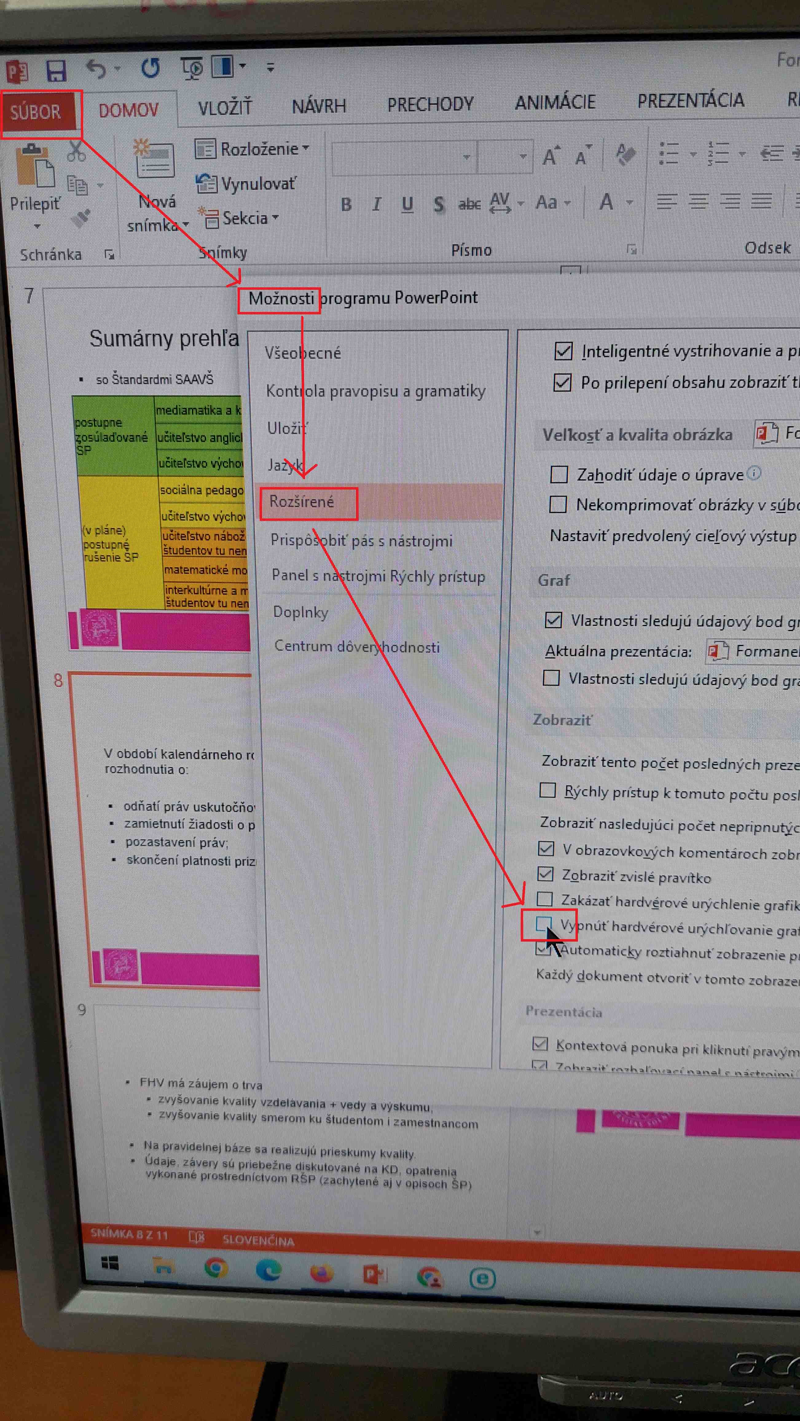 v ppt otvoriť subor - možnosti -rozširené - dať fajku - VYPNUT HARDWEROVE URYCHLENIE
