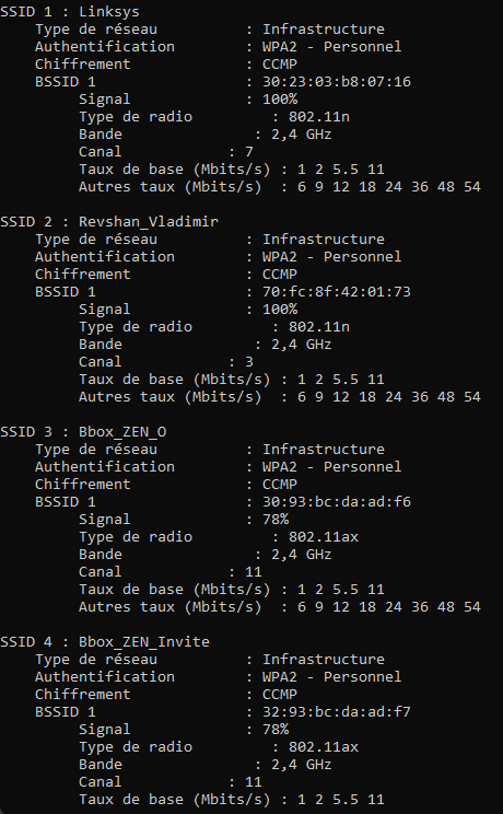 "Na pozadavek tazatele" to snad stacit bude, jinak jde pouzit tedy pro zobrazeni vice informaci canal, bssid, autentifikace, pasmo o okolnich siti Wi-fi i :