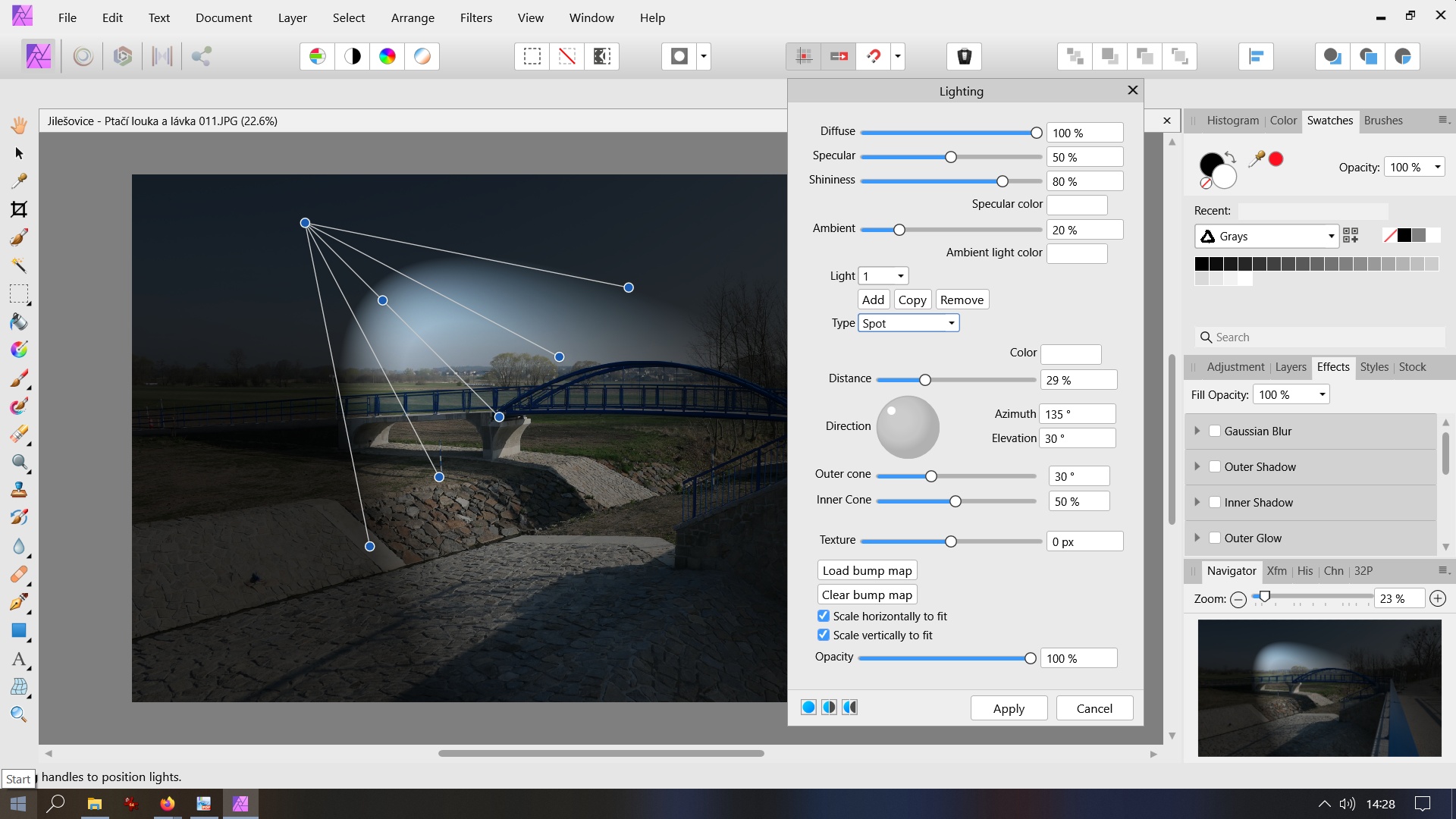 V Affinity Photo je něco podobného (Filters - Lighting).