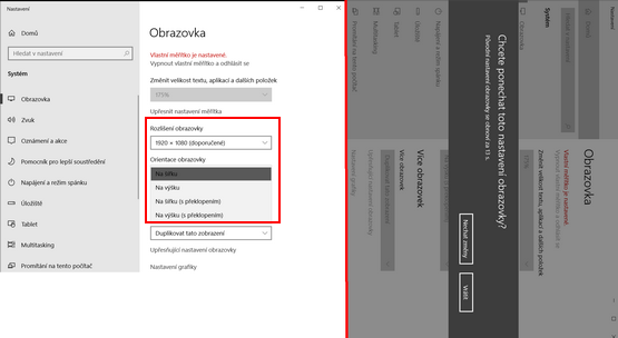 Nastavení orientace zobrazení