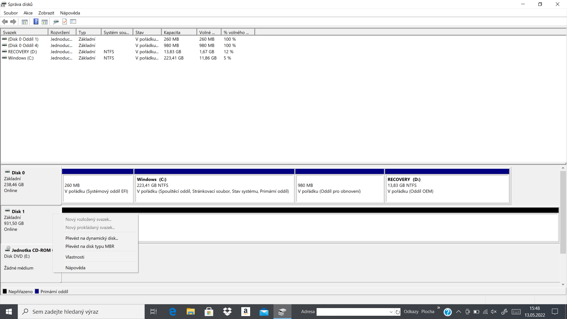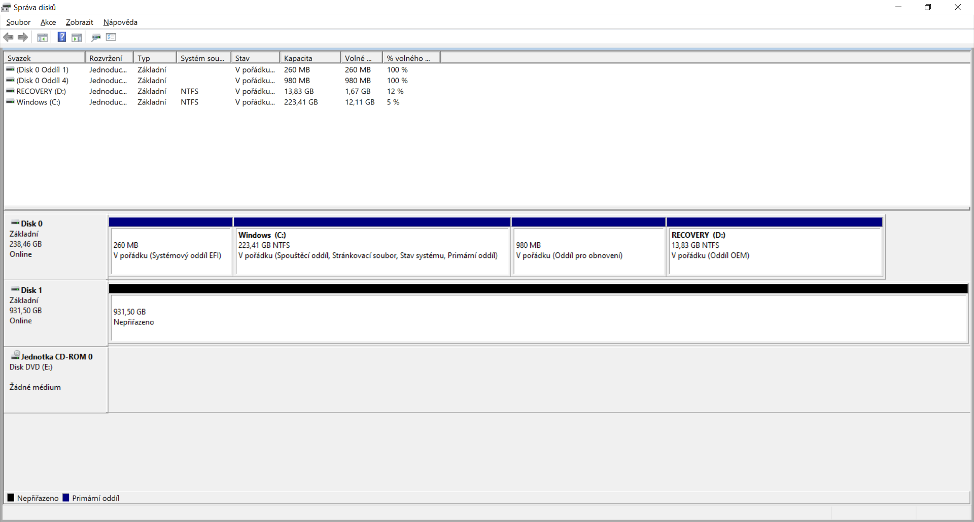 Nemůžu sem screen dát. Když přepnu na správcovský účet, abych mohl otevřít Správu disků, tak mi skor…