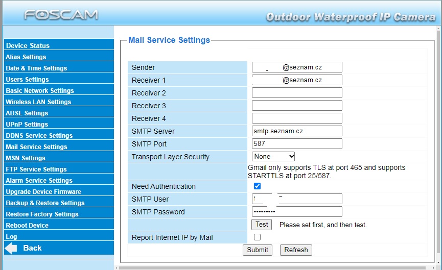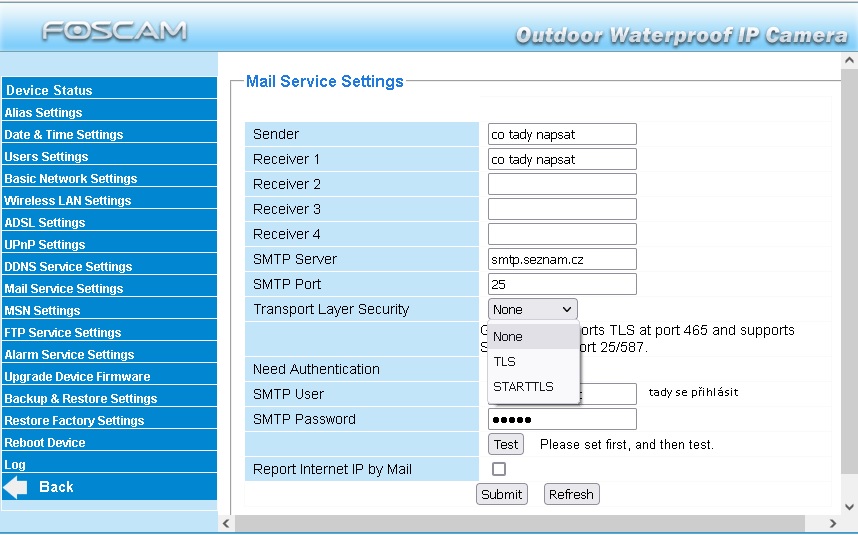Toto :-( Sender xxxxx@seznam.cz ? Receiver 1 xxxxx@seznam.cz ? SMTP Server smtp.seznam.cz ? SMTP Po… nový