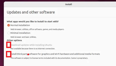 V dalsim okne nevol "minimimum" ale komplet at se behem instalece stahnout a nainstaluji i ovladace (cervene oznacene ctverce).