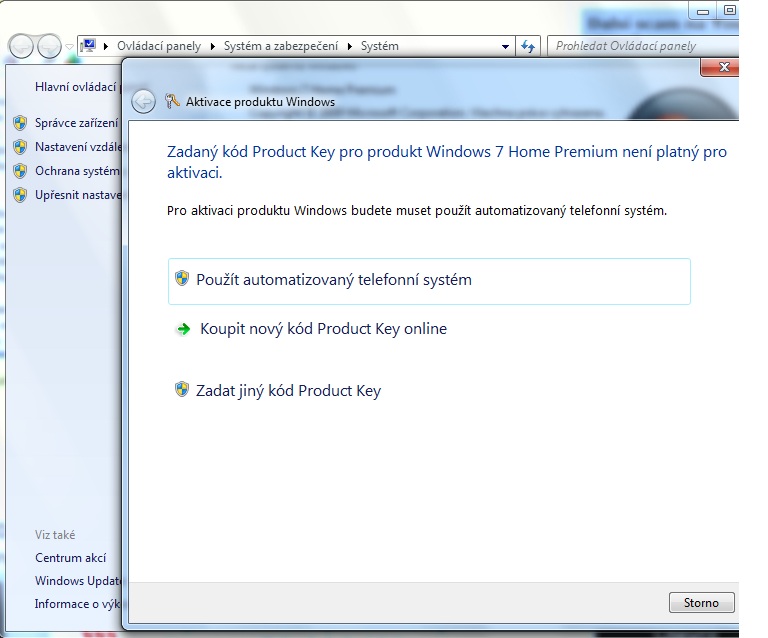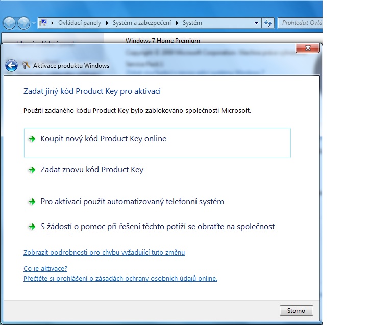 Marně se snažím aktivovat systém (Windows 7 Home Premium)