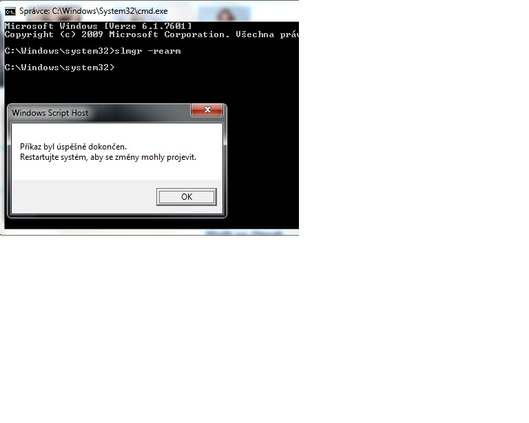 Dle internetu a víceméně i některých z Vás jsem zkusil aktivaci pomocí příkazového řádku.