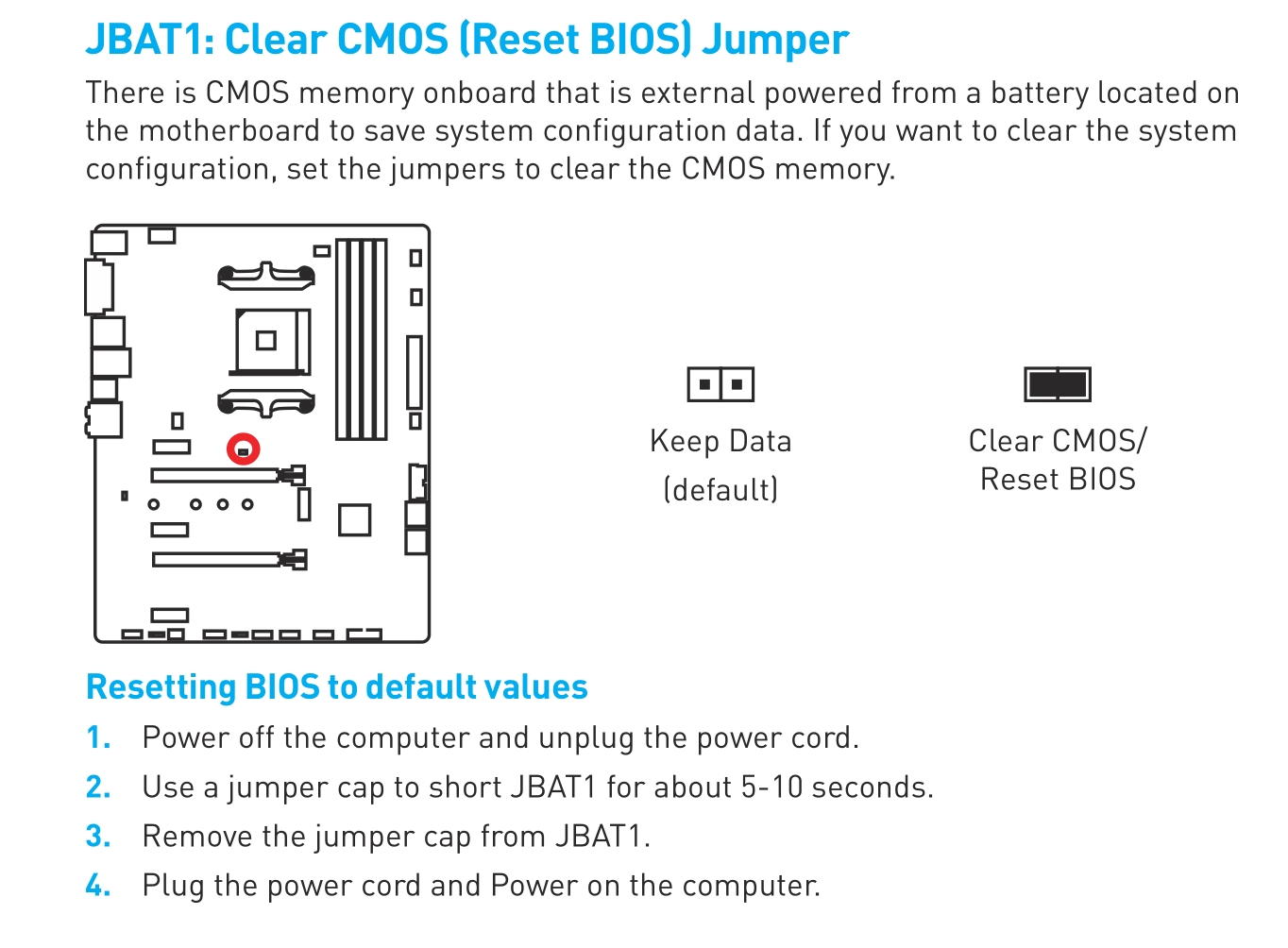 Ještě můžeš zkusit vytáhnout baterii na 5 minut a zkratovat kontakty pro baterii, pokud nebude poblíž jumper pro reset. Samozřejmě při odpojeném PC od napájení.