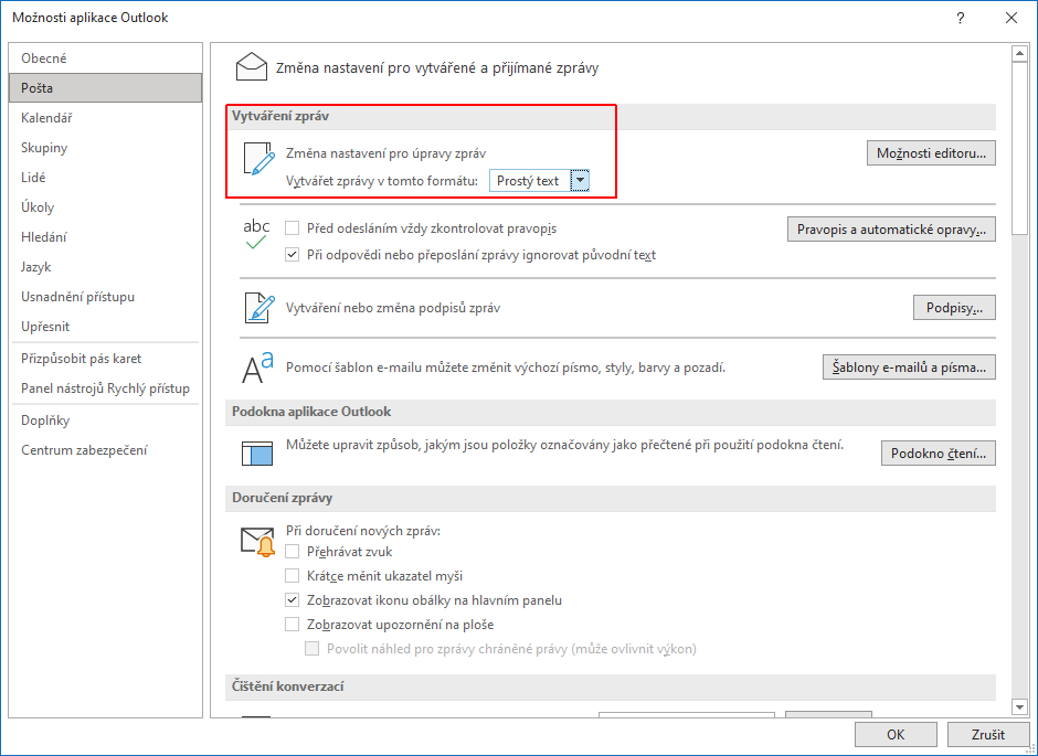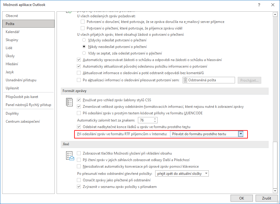 za zavináčom mám už skoro tridsať rokov "volny.cz". Manipulácie so screenshot používam, ale predsa len by bolo elegantnejším a prijatelnejším riešením nastavenie formátovania doručovanej pošty skrz Možností Outlooka.