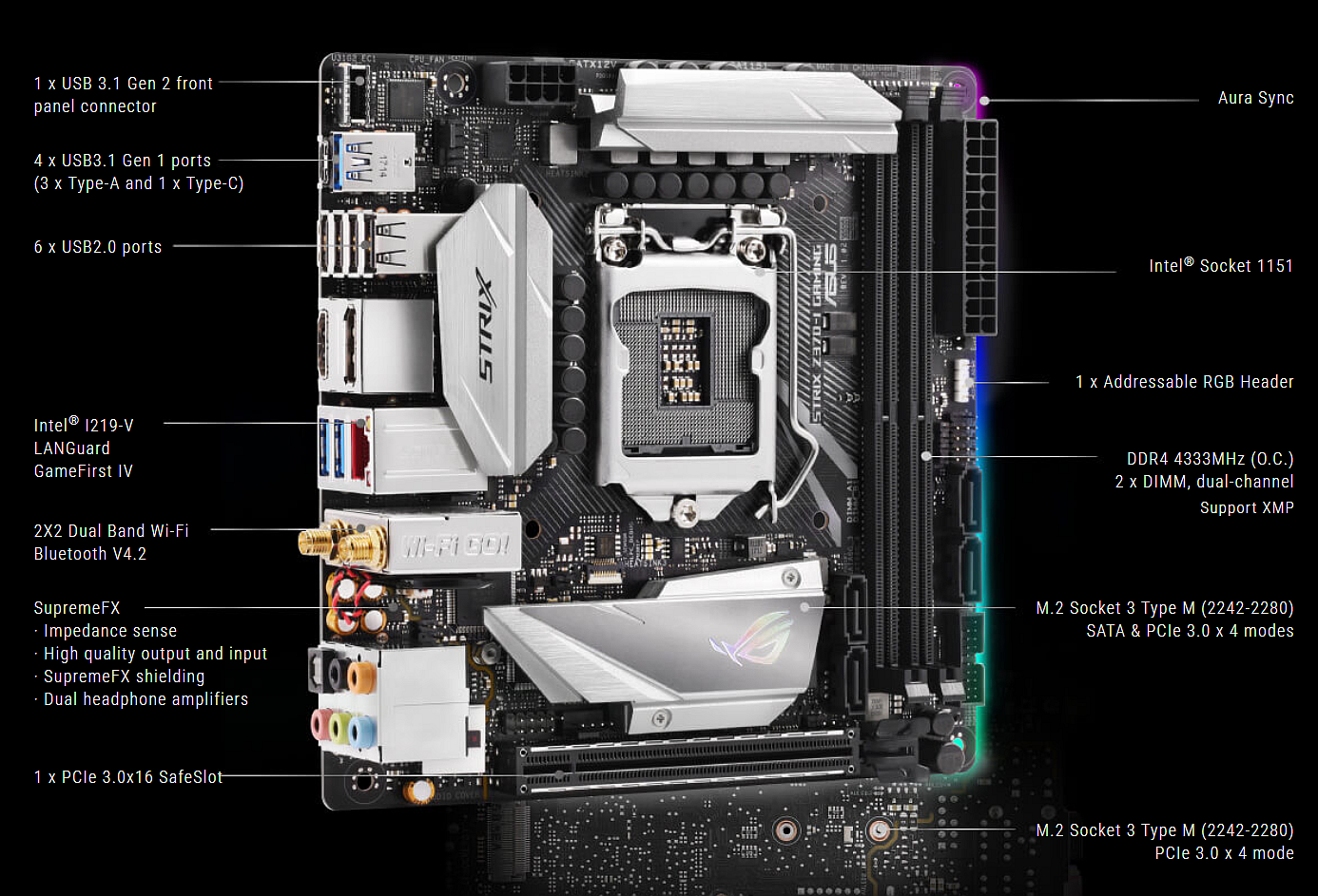 Slusna deska od ROG, take nevím v čem by jsi mel byt omezen naopak disponujes vsim potrebnym at porty tak bezdratovou tachnologii Wi-Fi / BT, SupremeFX audio chip etc.
