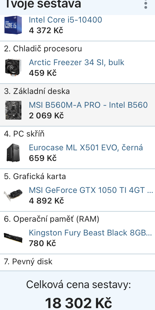 Tohle raději ne. Nemáš tam zdroj, ten pevný disk je doufám SSD NVMe, skříň je ta nejlevnější ze slabého plechu a bez ventilátorů, graf. karta nedostačující, RAM na hry raději už rovnou 2x8GB. To už raději ten Ryzen G s integr.grafikou.
