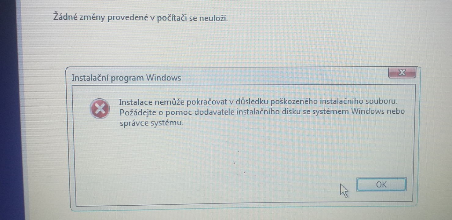 Z čeho Windows instaluješ? Seš si jistý, že je instalačka v pořádku? Zkusil jsi vytvořil novou flešk…