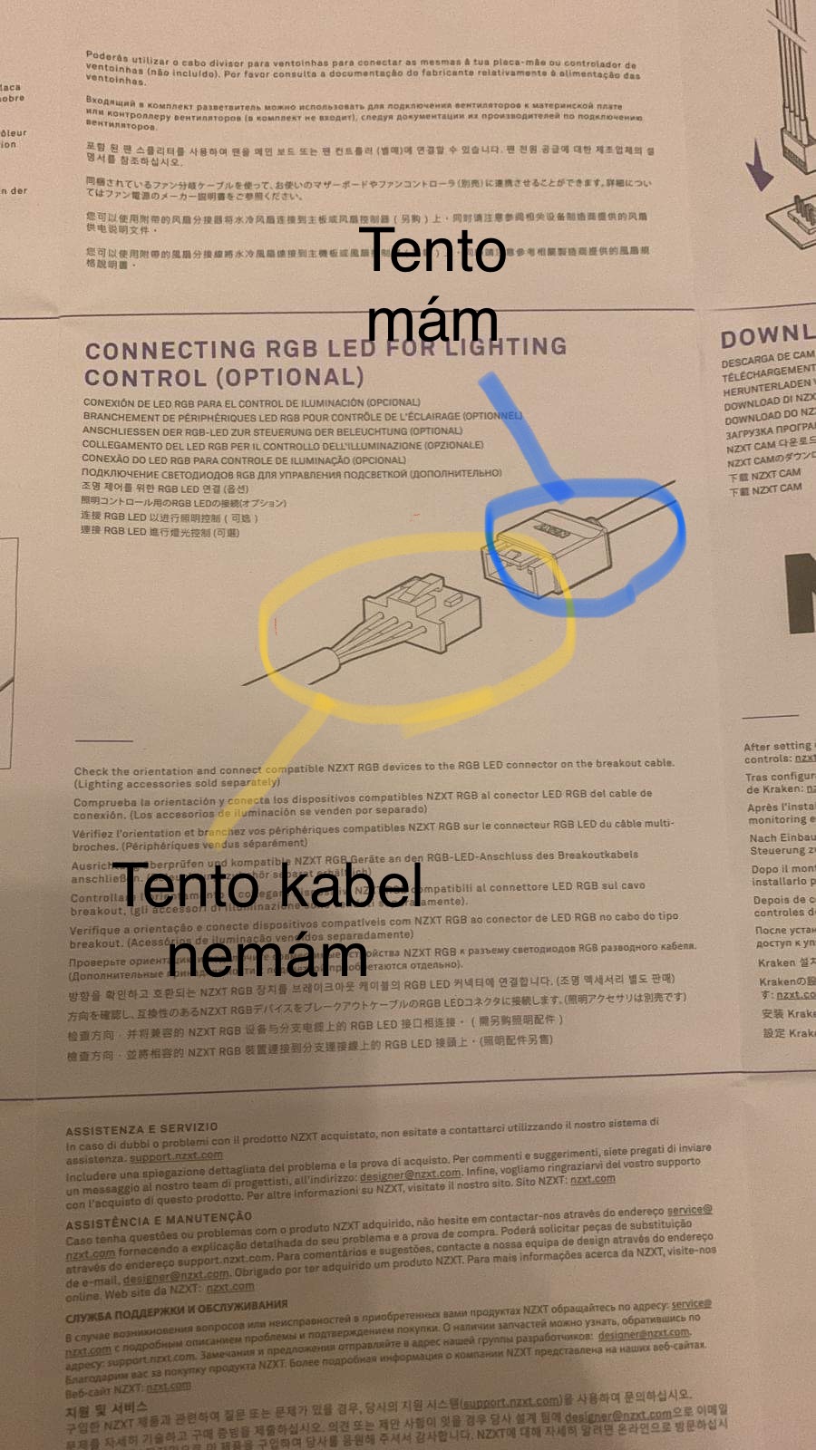Další problém je s rgb u krakena. Nemám rgb verzi kde svítí vetràčky, ale pumpa by měla. Z pumpy jde kabel viz foto, druhy kabel kam to zapojit nemam a do mb to nikam nepasuje