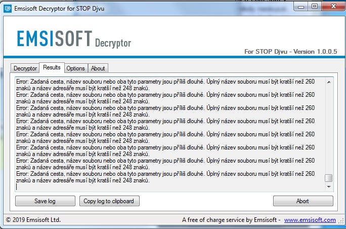 Dle stránky https://virus-removal-guide.net/cs/73473-vvew-ransomware/, jsem si stáhnul i případný Emsisoft Decryptor for STOP Djvu ale nic se neděje, respektive žádný úspěch, napsalo to ERROR.