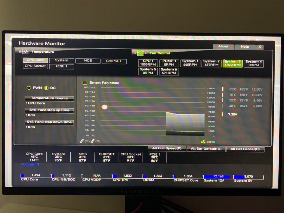 Přikládám fotky z biosu ohledně větráků, jestli mám vše nastavené jak mám, protože něco je špatně skrz 91,3 C naměřenou teplotu