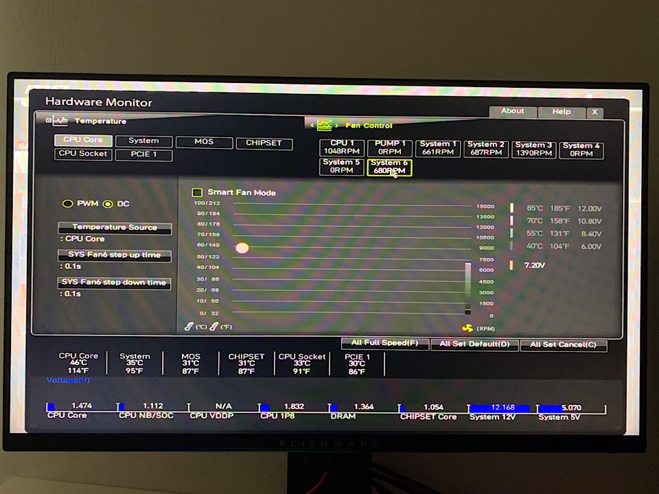 Informace postupu skládání : Základní deska má Cpu fan, pump fan a několik sys fan. V manualu chlazení bylo zapojit kabel z pumpy do cpu fan nebo aio fan. Je aio fan to samé jako pump fan ? Zapojil jsem pumpu do cpu fan a tři větráky na topení do sys fan 3 viz foto z biosu. Přední dva větráčky byly zapojeny do sys fan 1,2 a zadní větrák do fan 6. Může být problém ten že pumpa neni zapojena v pumpě a ty tři větráky nejsou zapojeny do cpu fanu ? Je totiž možnost ze zadní strany case kde je spojovač pro všechny větráky, napojit všechny větráky do něho a ten následně zapojit do cpu fan a pumpu do pumpy. Pumpu jsem nezapojoval do pumpy, protože v návodu je napsáno cpu fan nebo aio fan a já na základní desce mám jen cpu a pump fan.