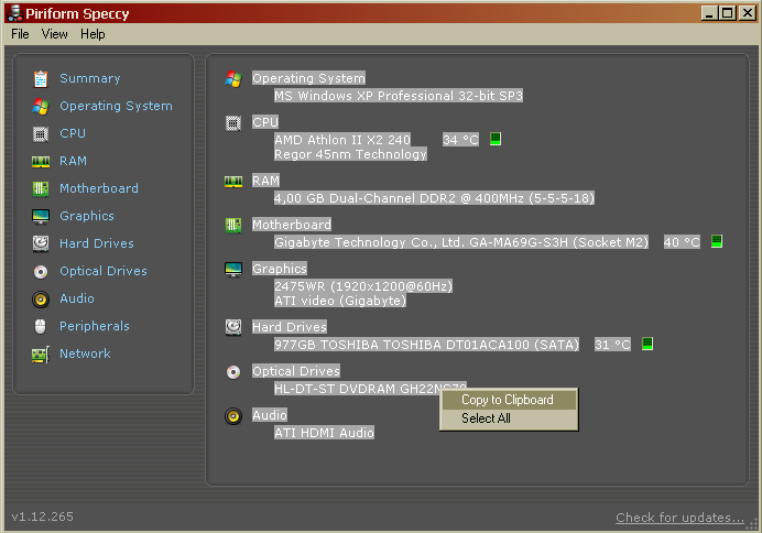 speccy: "ojet myšem" - ctrl+c - ctrl+v