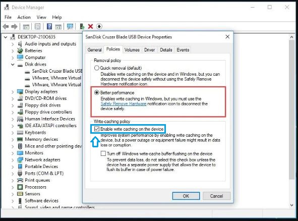 půjde spíš o cachování struktury disku. tím hrozí jen vyšší riziko ztráty dat při předčasném odpojení. na rychlost to má malý vliv.