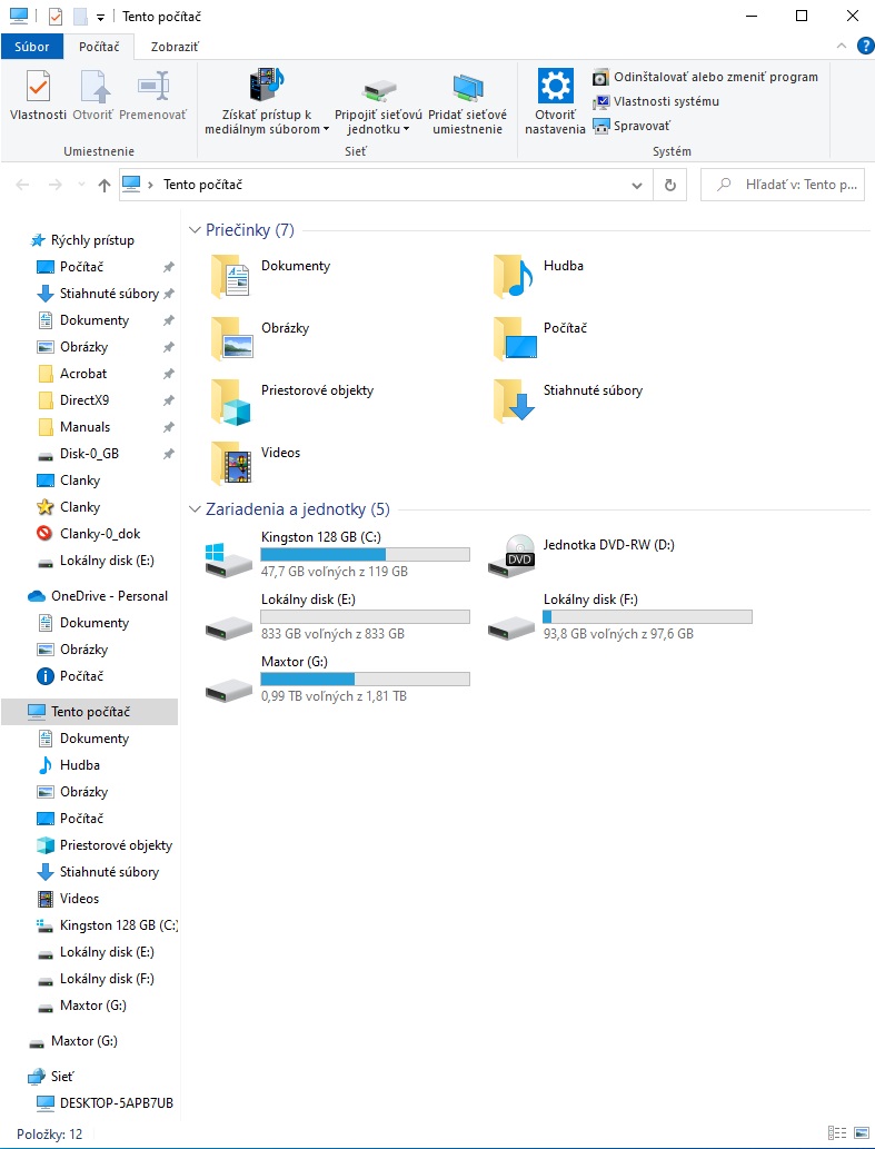 Práve že nie, zaplnenie disku je len 75 GB zvyšok je prázdne miesto 43 GB. Z vlastnými súbormi pracu…