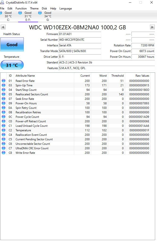 screeny z cdi taky chybí, nebo aspoň potvrdit, že smart hodnota "c7" je 0.