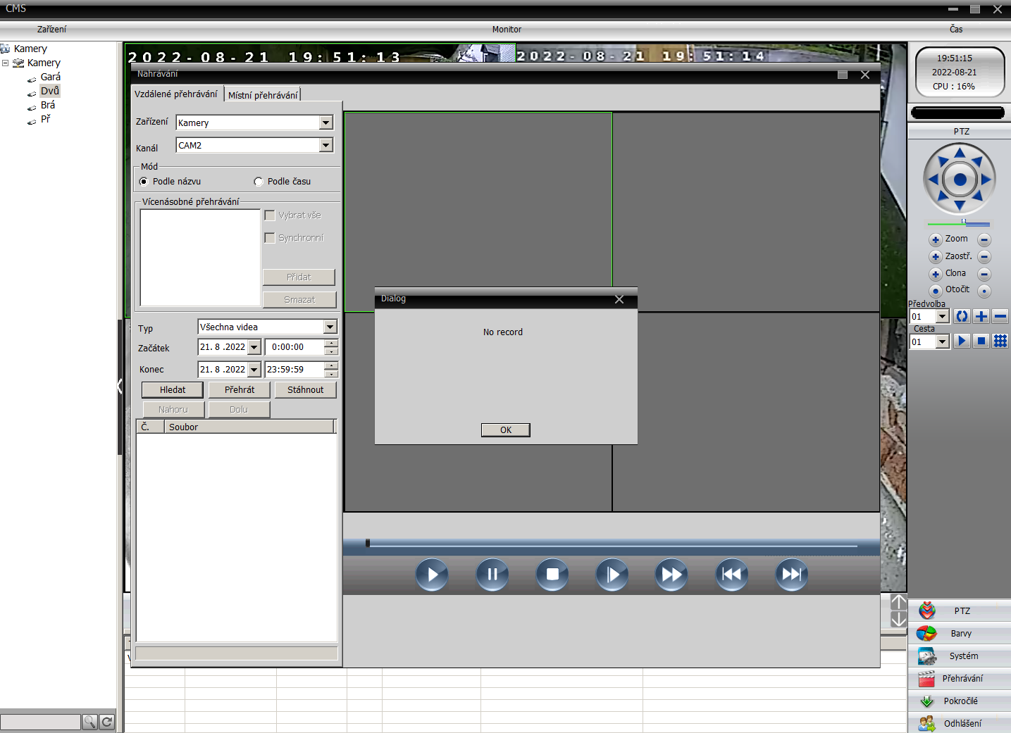 Určite si over či záznamník disk vidí (koľko je kapacita/voľné miesto)... Dá sa to aj na diaľku cez ten sw, ktorý máš...