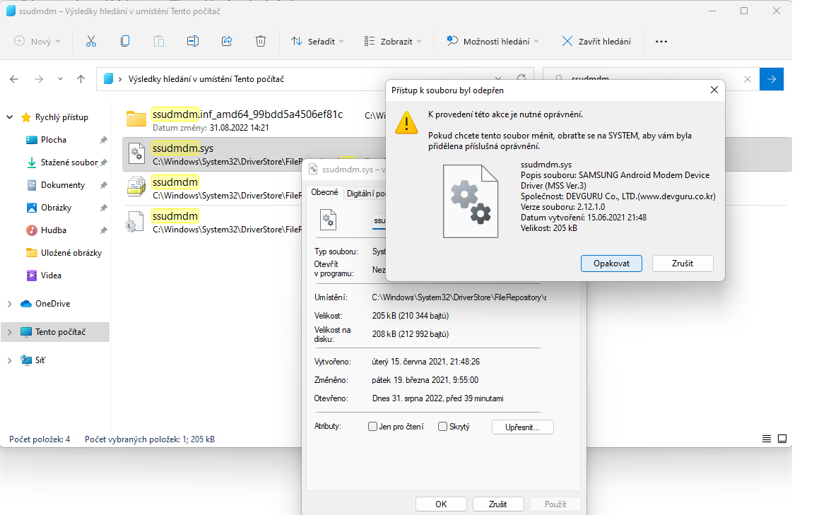 Takže, při pokusu o přejmenovaní na .old (aby se zrušil ten driver) - viz obrázek