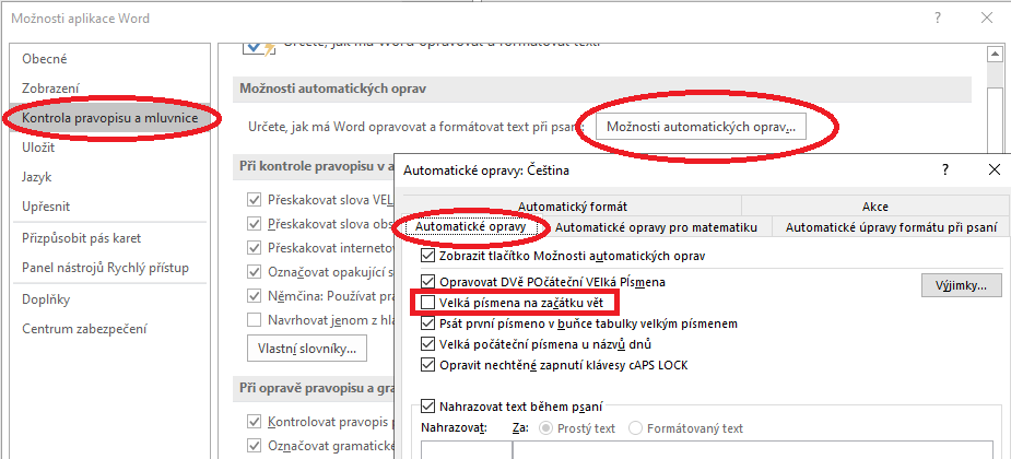 Zdravim.Chtel bych poradit s wordem.Nemuzu otevrit automaticke opravy ohledne tecky za slovem ve wordu.Chtel bych,aby se psalo za teckou automaticky male pismeno.Kdyz chci otevrit v moznostech aut. opravy,tak prestane word fungovat.