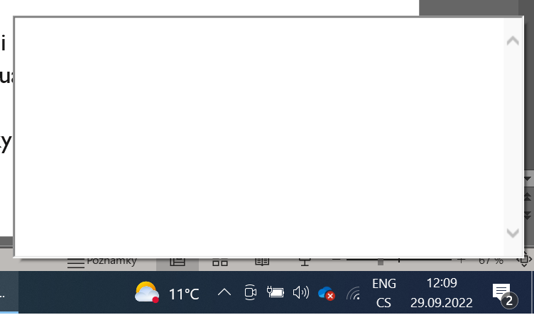 několik posledních dnů řeším na svém notobooku tento problém: V pravé dolní části obrazovky se zobrazuje okno, které se nedá zavřít, ani jinak vyřešit. Není vidět žádný text, logo nebo podobně. Po restartování počítače toto okno vždy na chvíli zmizí, ale přibližně po půl hodině se zase objeví.