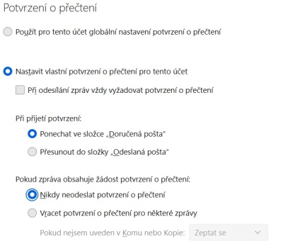 * Potvrzení o přečtení se dá zakázat, případně omezit adresátem.