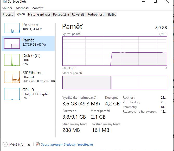 Využito 47% paměti. Takže na co ti kapacita RAM nestačí?