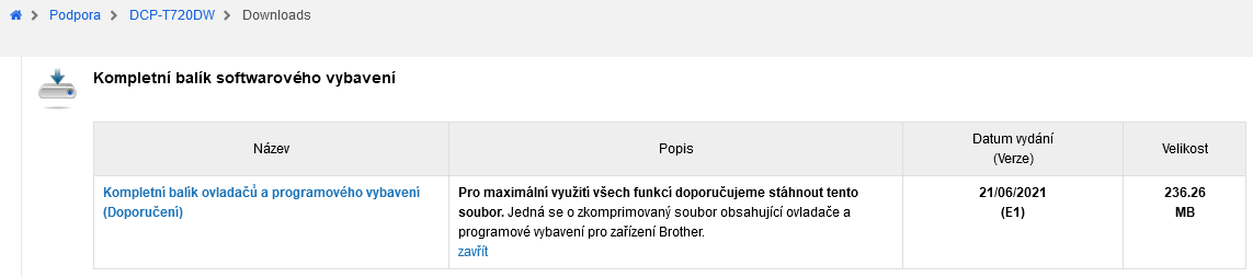 236 MB to asi nebude jen ovladač...https://www.brother.cz/support/dcp-t720dw/downloads brother-dcp-t720dw-ovladace-a-so.png 24.33 KiB