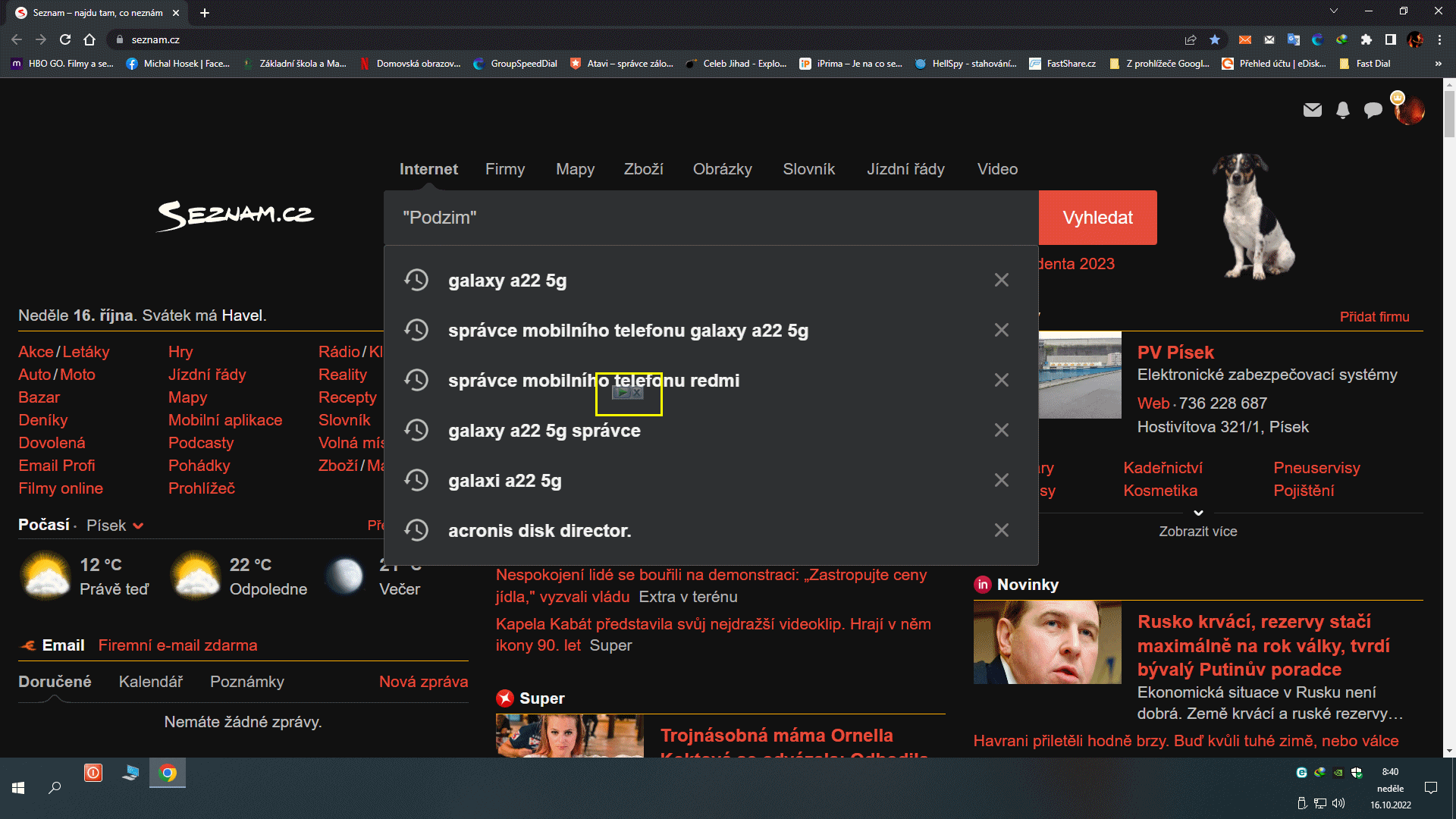 Já na printscreenu vidím prohlížeč Chrome a v něm spuštěný Seznam a tvá dřívější hledání. Chceš ty hledání dát pryč? Máš tam vpravo křížek. Nebo o co ti jde?
