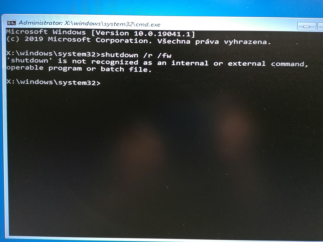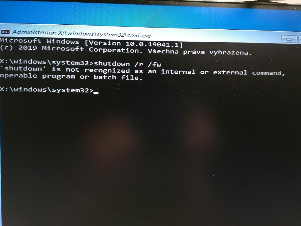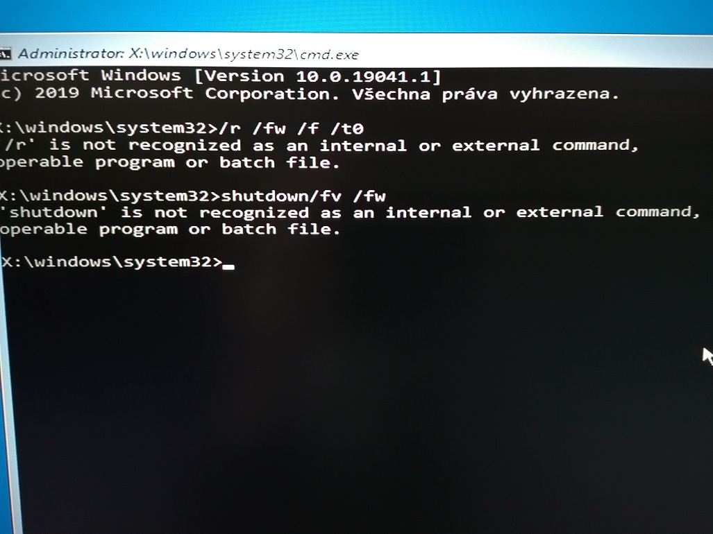 Pokud jste narazili na X:\WINDOWS\SYSTEM32>, zavedli jste instalační nebo záchranný disk do příkazového řádku...tam příkaz shutdown není
