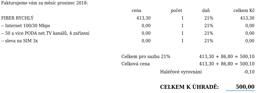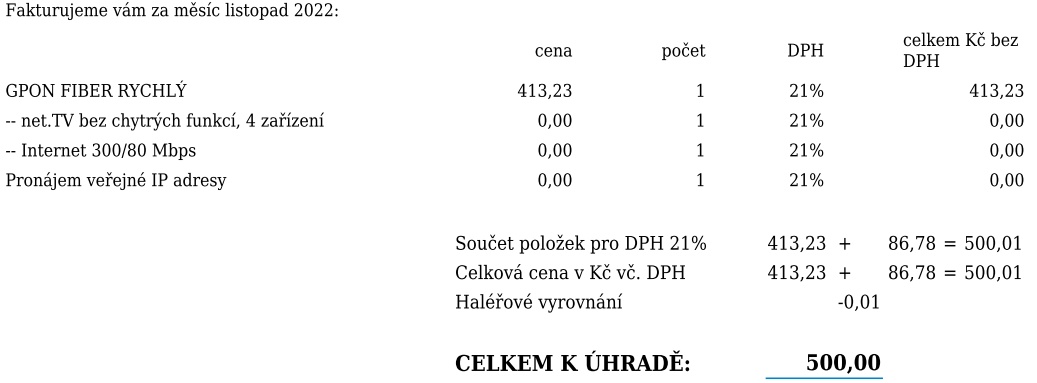 Platím pořád stejně, jako jsem platil před převedením na optiku.