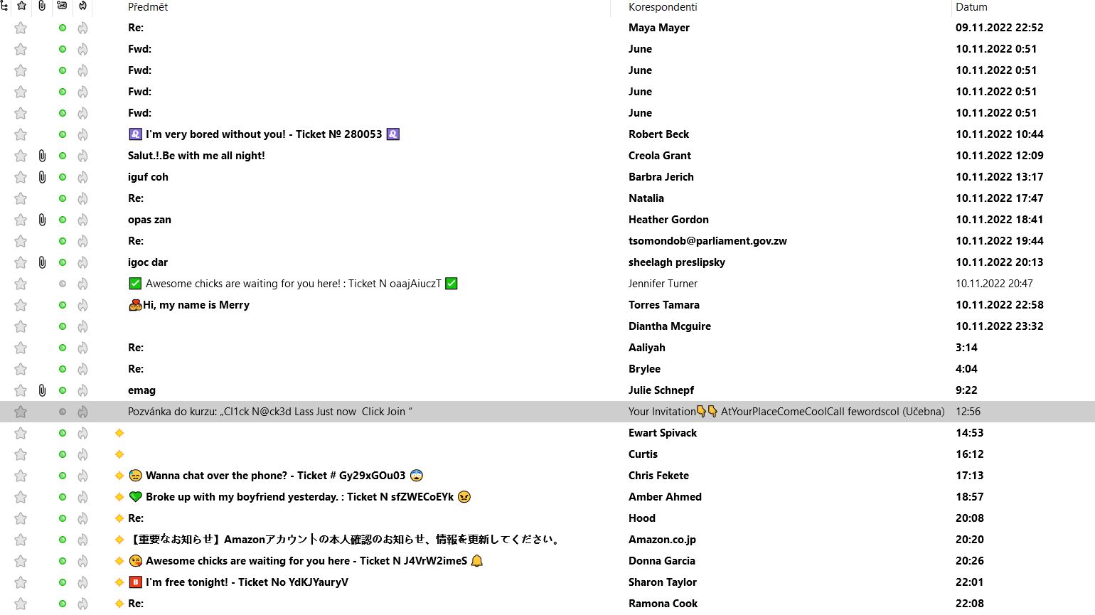 Já mám balík 7 500 spamových zpráv. Před snad20 lety někde dával odkaz Jan Fiala a už to ke stažení není. V Thunderbirdu udělám novou složku s názvem "spam", zkopíruji je tam, Ctrl+A a označím jako spam. Během chvíle, je pošťák vyučen.