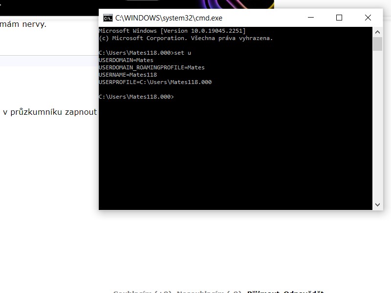 možná to rovnou zobrazí název tvého účtu c:\users\matysekkk, nebo tam zadej příkaz: