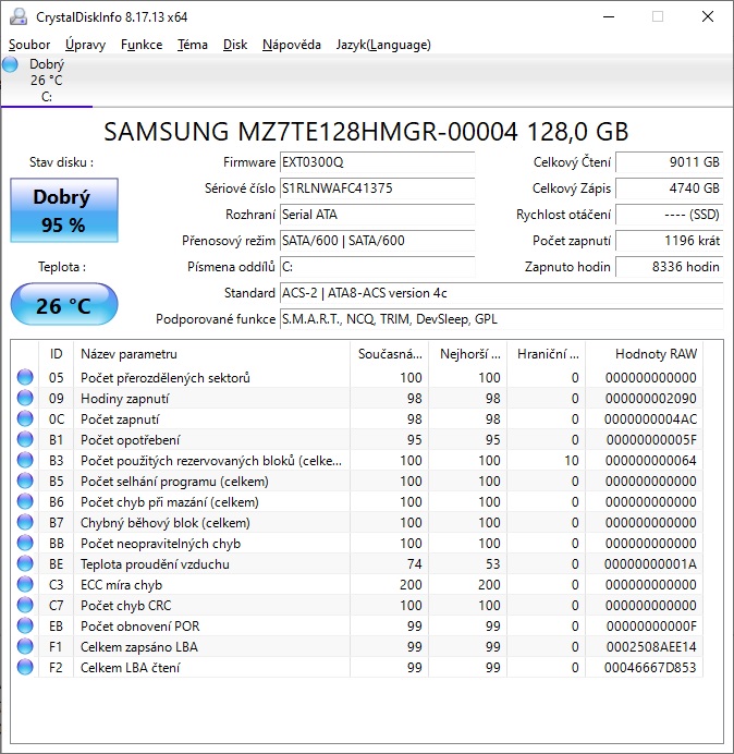 Však to máš zapojené. Jinak je to Samsung Pm851 Series 128gb TLC SATA 6gbps 2.5" SSD, ale to máš už v tom screenu.