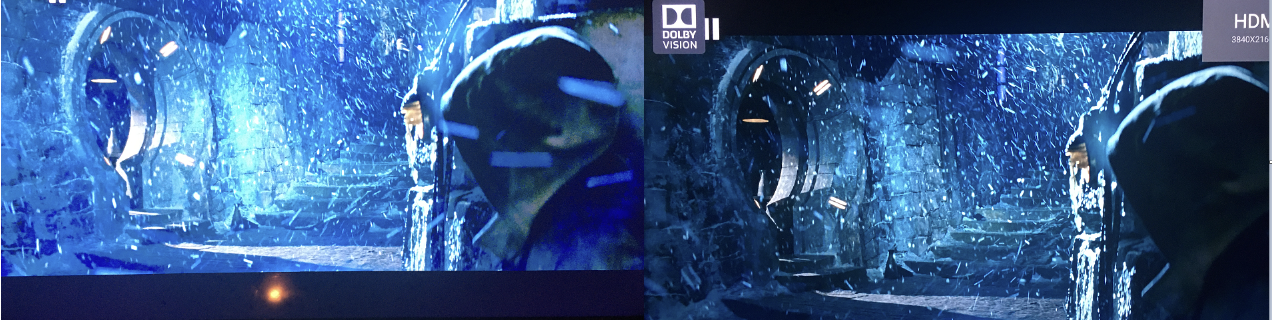 Mam zarizeni, ktere umi prevest kartografii HDR, SDR → Dolby Vision (vcetne LLDV) a naopak HDR → SDR, v levo normalni HDR v pravo ten samej film v Dolby Vision :