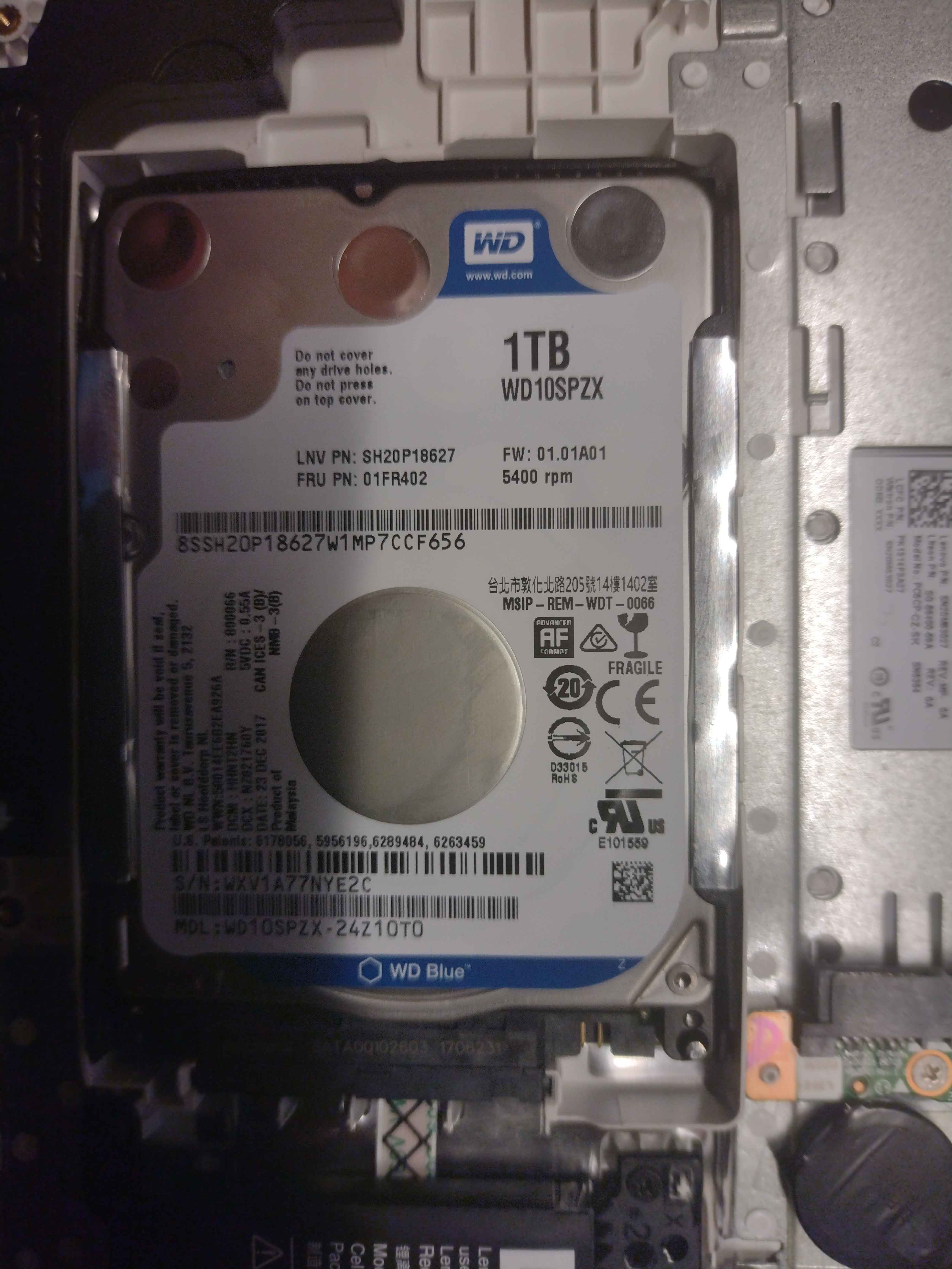 Na disku je napsaný typ - Western Digital WD10SPZX a kapacita 1TB. Takže normální 2,5" notebookový disk, žádná senzace se nekoná. Co tam máš dál?