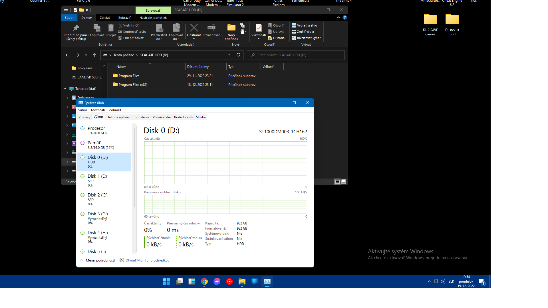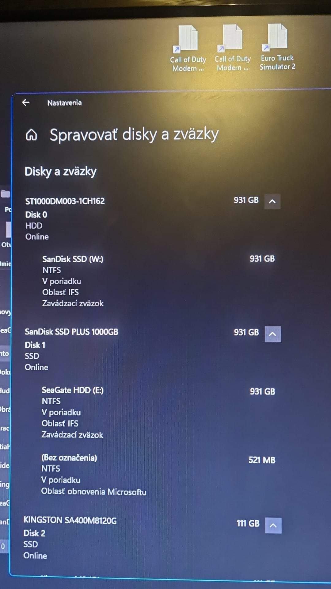 Na m2 (C) systém a hej je v doske v m2 slote, na SSD (D) hry, na HDD (E) boli fotky a pod..., takto to bolo v originále po dobu 2 rokov až do doby 3 dni dozadu, sestra mi dala HDD aby som jej zalohoval subory na môj HDD a jej HDD naformatoval, vypnutý počítač som otvoril, kedže som nemal po ruke SATA kabel tak som odpojil SSD ktoré obsahovalo HRY (som drbnutý lebo mohol som radšej dwd-rw), HDD na ktorom som mal blbosti zostalo zapojene a na miesto SSD som pripojil sestrine HDD, zapal počitač oba disky nabehli a spravil som zálohu na môj HDD, nasledne som jej disk naformatoval, keď bolo všetko hotové vypal som počitač sestrine formatovane HDD som vytiahol, na jeho miesto som späť pripojil moje SSD, po zapnutí počítača po preskočení loga mojej dosky systém nenabehol ale začal načítavať od nula do 100 % v zmysle (reconfigurate drivers) alebo niečo v tom zmysle nepamätám sa presne, po načítani windowsu fungovalo iba SSD ktoré obsahovalo fotky a zálohy (aj sestrinu), tak isto to vypísal aj BIOS že funguje len SANDISK SSD PLUS 1000 GB, skúšal som cez disk managera priradiť miesto ST1000DM003 (HDD) no nenašlo ho ani BIOS ani systém, skúsil som pomeniť mená písmenka a podobne nepomohlo, znova som vypal počitač no odpojil som SSD a nechal pripojené len HDD, po zapnutí sa mi už zobrazili aj ikony hier začal púštať STEAM a iné programy (ktoré v originále boli na SSD, kúpil som SSD na hry a inštaloval tam, takže nie neboli na HDD proste nie), BIOS zasa registroval normálne ST1000DM003 (HDD) aj systém, fotky a filmy zálohy aj sestrina fuč, pretože sa to nachádzalo na odpojenom SSD, nakoniec som pripojil aj SSD zapal počitač a nahralo oba disky aj systém aj BIOS, lenže prohramy a fotky ostali nadalej prehodené opačne, (nemôžem ti dať dôkaz že tie hry 100% boli na SSD pred tým ako sa to stalo, ale zamysli sa písal by som tu keby mám 10 rokov a neviem čo si kam inštalujem, tie hry som inštaloval na SSD, som presvedčený že chyba nastala pri bootovani disku ako novo pripojený disk pretože si ho systém nejakým spôsobom nepamätal. Posledná vec neodpájal som SATA káble z dosky ale z diskov takže disk je v doske na tom slote kde bol aj pred tým, ďakujem som rád že sa najde niekto kto chce pomôcť. Ak sa nič nedá robiť spravím si zálohy naformátujem oba a znova nainštalujem všetko na SSD a na HDD nahádžem zálohy.