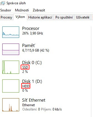 Prozradím ti kouzlo: Ctrl+Shift+Esc na záložce Výkon vidíš, který disk je SSD a který HDD. Pak už je…
