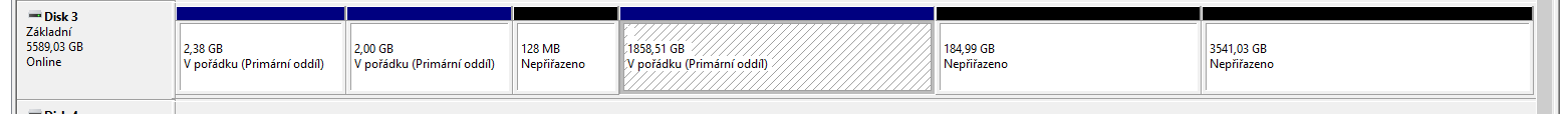Ale IMHO ta partition 3.64 musi byt naformatovana (coz z obrazku vypada ze neni) aby jsi tu dosavadni mohl rozsirit.