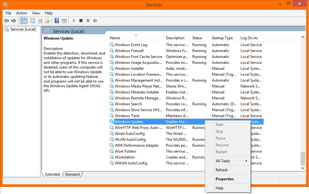 V tutoriálech šlo restartovat služby Windows Update. Narozdíl od mé situace (možnosti Start/Stop/Pause/... neaktivní)