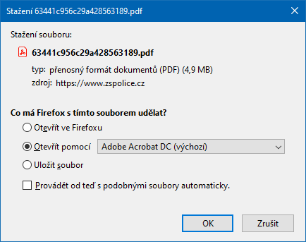 Dobrý den, delší dobu se trápím v Mozille s otevíráním pdf, předtím se zobrazila nabídka a pokud jsem vybral otevřít, soubor se otevřel a nic víc. Dnes se soubor sice otevře, ale rovnou se i ukládá, což nechci. Dá se někde nastavit, aby se soubor jenom otevřel a neukládal? Děkuji.