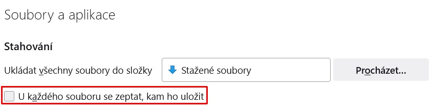 Měl jsem to a mám to stejně. Akorát místo plochy mám nastaveno, u každého souboru se zeptat kam ulož…