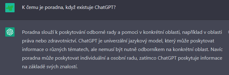 Jinak většina místních rádců je ze staré školy (někdy se jim říká IT důchodci a vůbec to nesoucí s věkem viz diskuze nahoře) a vůbec netuší, že něco jako gpt 3(4) existuje.