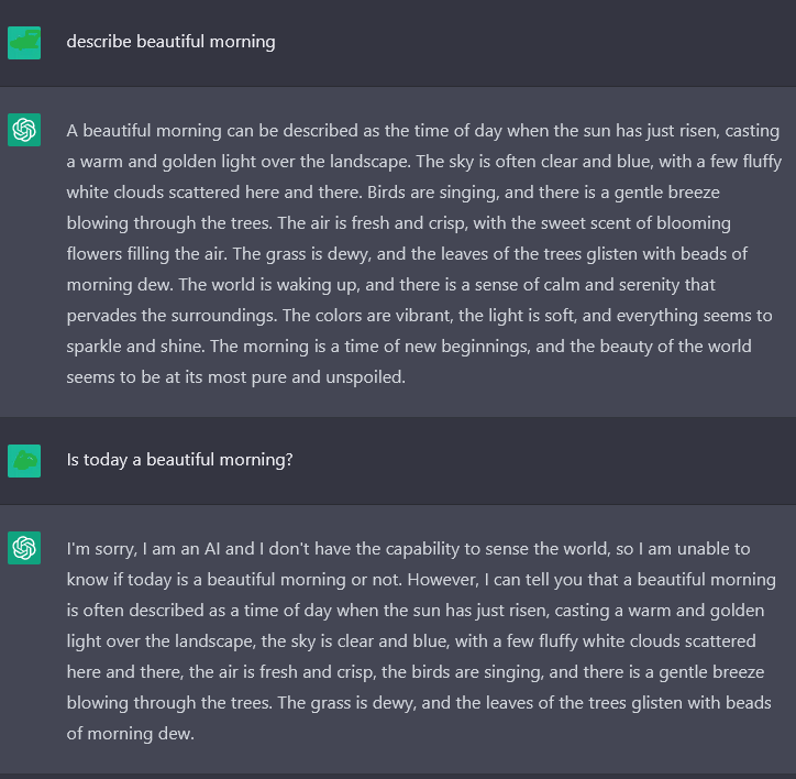 Konverzační boti jsou tu už desítky let, jen se o nic nemluví (resp. nejsou hypovaní) proto, že jejich výsledky byly řekněme slabé až směšné. Kvalita GPT-3/4 je v rozsahu nabraných informací (a tedy schopnosti komunikovat v mnoha jazycích), ale tak jako tak stále chybí ten podstatný faktor, a tím je logika. Lidská konverzace totiž není jen faktografická, ale obsahuje i logiku a abstrakci. Mimochodem i v čistě faktografické části lze tohoto bota nachytat na švestkách. Obecně se dá říct, že se jedná o "AI" postavenou na všeobecných/ustálených informačních zdrojích, je to takový Andrew Scheuchzer dnešních dní - a Čapek byl prostě génius.