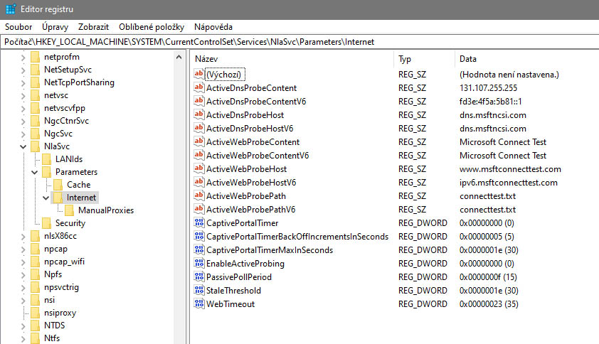 HKEY_LOCAL_MACHINESYSTEMCurrentControlSetServicesNlaSvcParametersInternet